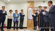 (남양주=연합뉴스) 김도윤 기자 = 주광덕 경기 남양주시장 당선인의 시장직 인수위원회가 9일 정약용 도서관에서 현판식을 열고- 2022.06.09 16:15