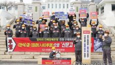 (정선=연합뉴스) 배연호 기자 = 광산진폐권익연대는 6·1 지방선거 이광재 강원도지사 후보 선거사무소(춘천)와 김진태 강원도지- 2022.05.23 11:11