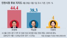 인천시장, 유정복 44.4%, 박남춘 38.3%, 이정미 4%