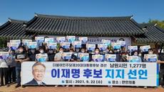 전북 남원시민 1,277명이 더불어민주당 대통령 후보 경선 주자인 이재명 후보 지지를 선언했다. 이들은 22일 오후 남원 만인- 2021.09.22 16:57
