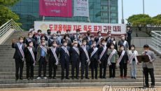 (포항=연합뉴스) 손대성 기자 = 경북 포항시의회는 10일 시의회 광장에서 규탄 대회를 열고 "일본 정부는 도쿄올림픽 지도에- 2021.06.10 13:43