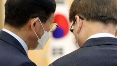(무안=연합뉴스) 여운창 기자 = 전남도의회 김한종 의장과 더불어민주당 전남 도의회 원내대표 이장석 의원은 25일 기자회견을- 2021.05.25 15:35