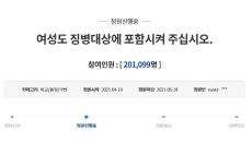 "여성도 군대 보내라"…靑 청원, 나흘 만에 20만명 돌파