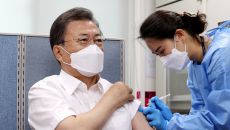 문 대통령, AZ 백신 접종...직후 靑 참모회의 주재