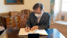 [이데일리 김영환 기자] 문재인 대통령이 취임 전 거주하던 서울 서대문구 홍은동 연립주택 경비원의 암투병 소식과 관련해, 쾌유- 2020.10.18 15:24