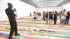 알록달록 거대한 추상 회화가 바닥에 깔렸다. 600㎡ 규모의 도입부에 깔린 초대형 설치 작품 ‘떠오르다(Float)’. 작가는- 2025.08.11 00:38
