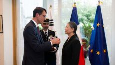 설치미술가 김수자 작가가 주한 프랑스 대사관저에서 프랑스 정부가 수여하는 문화예술공로훈장 '오피시에'를 받았습니다. 서울과 프- 2025.07.11 13:16