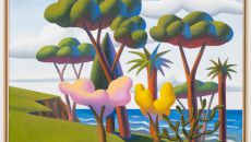 몽글몽글한 초록 나무, 샛노란 건물 기둥과 자줏빛 첨탑. 낯설고 이국적인 풍경이 폭염을 잊게 만든다. 최근 미술 시장에서 각광- 2025.07.10 00:51