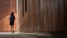 한 남자가 와이셔츠 소매를 걷어붙이고 허리춤에 손을 올리고 있다. 멀리서 볼 때는 분명하던 모습은 가까이 다가갈수록 해체된다.- 2025.06.26 16:20