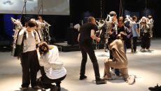 #1. 광산 노동자 차림의 남자 4명이 피아노 연주에 맞춰 노래하고, 화면에 흐르는 목탄 드로잉 애니메이션에선 한 남자가 무언- 2025.05.12 14:19
