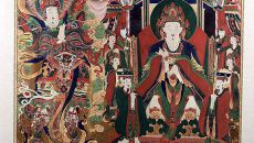 (서울=연합뉴스) 이세원 기자 = 36년 전 도둑맞은 뒤 미국의 한 미술관에서 발견된 불화 신중도가 반환돼 부처님오신날을 앞두- 2025.04.23 15:18