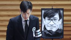 [이데일리 스타in 김보영 기자] 고(故) 안성기의 장남 미술가 안다빈이 9일 오전 영결식에 유족을 대표해 인사한 가운데 부친- 2026.01.09 10:45
