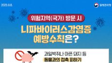울진군은 치명률이 높은 니파바이러스 감염증에 대한 주의를 당부한다. 설 연휴 해외 방문이 늘어날 것으로 보고 예방수칙 준수를- 2026.02.14 08:07