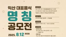 전북 익산시가 오는 25일까지 '익산 대표음식 명칭 공모전'을 개최한다. 13일 시에 따르면 이번 공모전은 익산 음식의 대내외- 2025.08.13 13:57