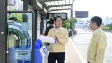 정명근 화성특례시장이 23일 간이이동노동자쉼터 및 스마트쉘터 정류장 등 폭염 대응시설을 직접 점검하며 시민 안전 확보에 나섰다- 2025.07.24 13:41