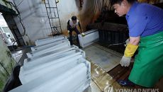[르포] 가마솥더위에 얼음공장 주문 쇄도…작업자들 땀이 송골송골