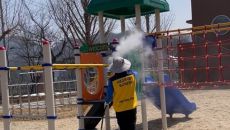 대전서부교육지원청, 스팀살균으로 놀이시설·모래 소독