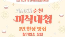 순천시가 개인 맞춤형 외식문화 확산에 발맞춰 ‘1인 상차림’을 주제로 제10회 순천미식대첩을 개최한다. 이번 대회는 순천 대표- 2025.05.25 09:26