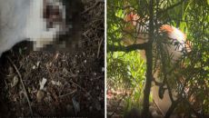 [이데일리 박지애 기자] 지난달 20일 경기도의 한 길고양이 급식소 앞. 입 안에 나무토막이 깊게 박혀 구강이 모두 망가진 채- 2025.05.03 09:00