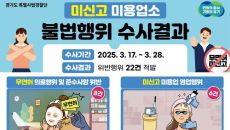 경기도가 불법 미용업소 22곳을 적발했다. 경기도 특별사법경찰단은 지난 3월17일부터 28일까지 2주간 고양·부천 등 12개- 2025.04.25 10:15