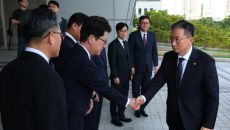 정성호 법무부 장관이 1일 부산고검·지검을 방문해 간부들과 인사하고 있다. 정 장관은 이날 김건희특검팀 파견 검사 전원의 원대- 2025.10.02 01:35