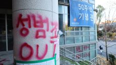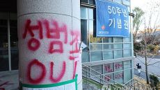 ▲ 지난 2024년 11월 서울여대 50주년 기념관 일대에 성범죄 OUT 등의 항의 문구들이 래커로 칠해져 있다. 학생 성추행- 2025.09.29 18:11