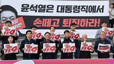 (서울=연합뉴스) 김정진 기자 = 더불어민주당·조국혁신당·사회민주당은 10일 윤석열 전 대통령의 검찰총장·대통령 재직 당시 검- 2025.07.10 12:32