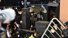 尹 휘호석에 ‘내란’ 래커칠한 노조원 검찰 송치…노동계 반발
