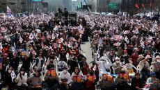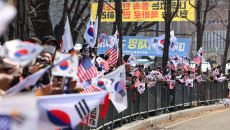 ▲ 8일 경기도 의왕시 서울구치소 앞에서 윤 대통령 지지자들이 석방을 기대하며 태극기와 성조기를 흔들고 있다. 윤석열 대통령에- 2025.03.08 17:00