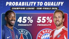 '최초 2년 연속 UCL 준결승 진출' 아스널, 20년 만의 결승 진출도 유력!...우승 확률은 뮌헨에 이어 2위 '28%'