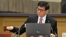 ▲ 이창용 한국은행 총재가 29일 서울 중구 한국은행에서 열린 금융통화위원회에서 의사봉을 두드리고 있다. 이창용 한국은행 총재- 2025.05.29 12:17
