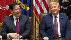 트럼프의 함박웃음… 대통령 빵빵 터뜨린 美국무장관의 유머