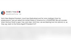 도널드 트럼프 미국 대통령은 현지시간 1일 "이란의 새로운 정권 대통령(New Regime President)이 방금 미국에- 2026.04.01 22:28