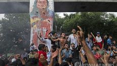 (서울=연합뉴스) 유창엽 기자 = 지난해 셰이크 하시나 당시 총리를 물러나게 했던 대학생 시위 참가자들이 하시나 등에 대한 재- 2025.08.05 10:50