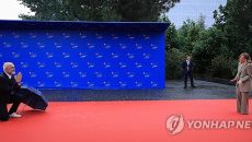 키가 2m가 넘는 에디 라마 알바니아 총리가 단신의 조르자 멜로니 이탈리아 총리를 환영하기 위해 한쪽 무릎을 꿇는 행동을 해- 2025.05.18 05:40