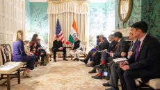 미국을 방문 중인 나렌드라 모디 인도 총리가 13일(현지시간) 도널드 트럼프 미국 대통령과 회담하기 전 트럼프 정부의 실세인- 2025.02.14 09:01
