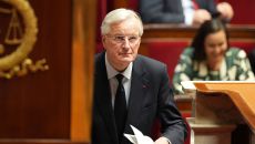 ▲ 4일 하원에서 열린 정부 불신임안 토론장에 참석한 바르니에 총리 미셸 바르니에 프랑스 총리가 현지시간 5일 엘리제궁에서 에- 2024.12.06 00:42