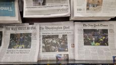 ▲ 4일(현지시간) 미국 버지니아주의 한 마트 신문 가판대에 이날자 1면 머릿기사와 사진으로 한국 계엄 사태를 다룬 월스트리트- 2024.12.05 09:07