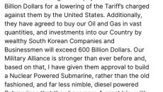 도널드 트럼프 미국 대통령이 한국에 핵추진 잠수함을 승인했다고 밝혔다. 아울러 관세 인하 대가로 한국이 미국에 3500억달러(- 2025.10.30 07:06