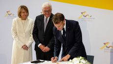 프랑스 대통령, 수백년 탐낸 독일 땅 찾아 “통일 35주년 축하”