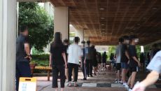 검사 기다리는 줄 (창원=연합뉴스) 한지은 기자 = 신종 코로나바이러스 감염증(코로나19) 확진자가 나온 경남 창원의 한 고등- 2020.08.28 13:54