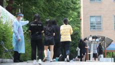 코로나19 전수검사 기다리는 원묵고 교사와 학생들 (서울=연합뉴스) 홍해인 기자 = 8일 서울 중랑구 원묵고등학교에 마련된 선- 2020.06.08 10:47