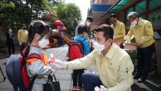 이강덕 포항시장, 2차 등교 개학 초등교·유치원 새내기 '환영행사'