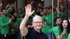 팀 쿡 애플 최고경영자(CEO)가 지난 2023년 4월18일(현지시간) 인도 뭄바이에 처음으로 개점한 애플 스토어에서 손을 흔- 2025.05.28 13:58