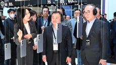 갤럭시S25 엣지 보는 노태문 삼성전자 사장-김영섭 KT 대표