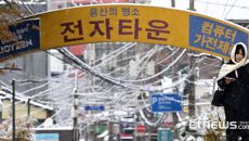 서울을 비롯한 수도권, 강원 지역에 첫 눈이 내리며 대설 특보가 발효된 27일 서울 용산 전자상가에서 시민들이 종종걸음으로 이- 2024.11.27 10:13