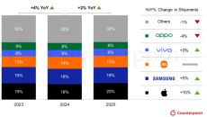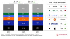 2025년 스마트폰 출하 2% 성장…애플 1위, 4분기 점유율 25%