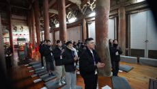 (구례=연합뉴스) 장아름 기자 = 해군사관학교 생도들이 지리산 화엄사에서 열린 '캠플스테이'(캠핑+템플스테이)에 참가하며 심신- 2025.12.07 15:38