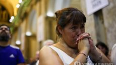 (부에노스아이레스=연합뉴스) 김선정 통신원 = 프란치스코 교황의 모국인 아르헨티나의 가톨릭 신자들이 폐렴 진단을 받고 입원 치- 2025.03.09 02:16