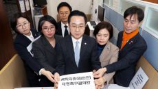 김민전 의원 제명 촉구 결의안 제출하는 야6당